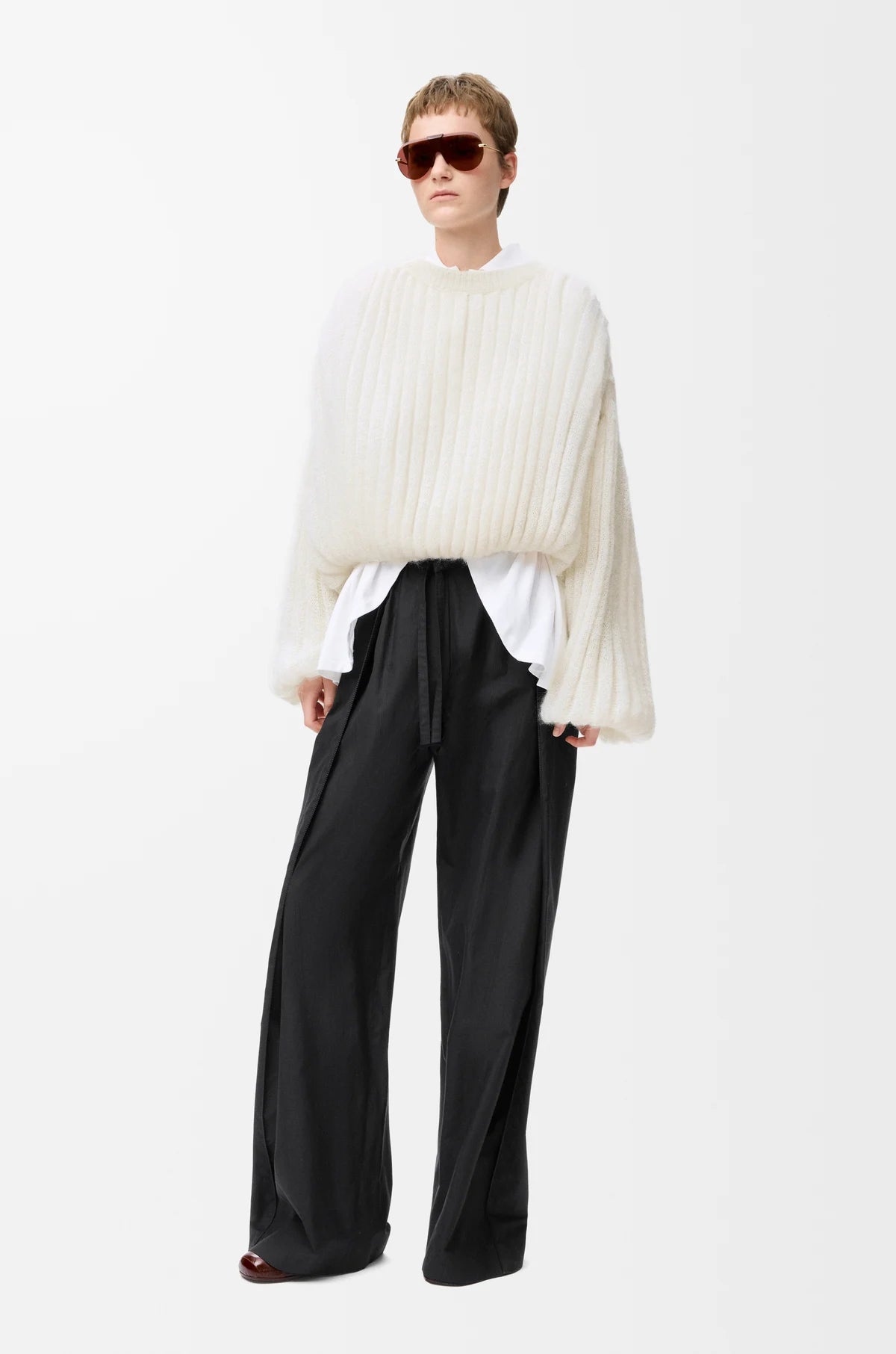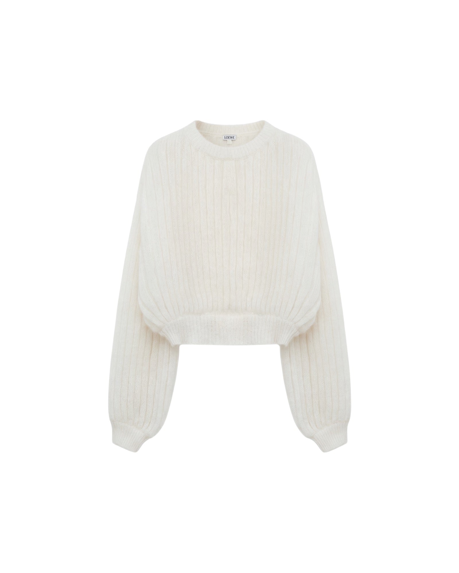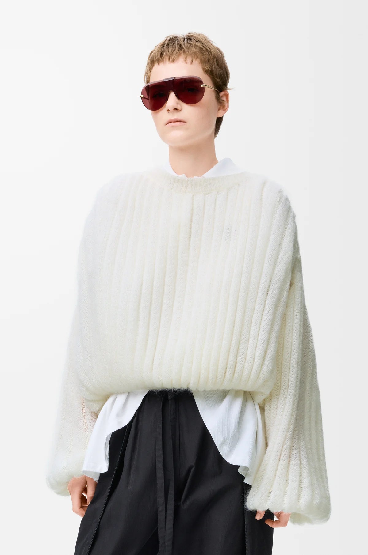 Sweater in medium-weight brushed mohair blend featuring balloon sleeves.
