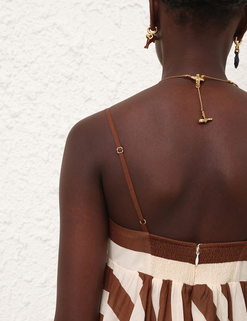 ZIMMERMANN DAYLIGHT STRIPE DRESS CHOC/CREAM