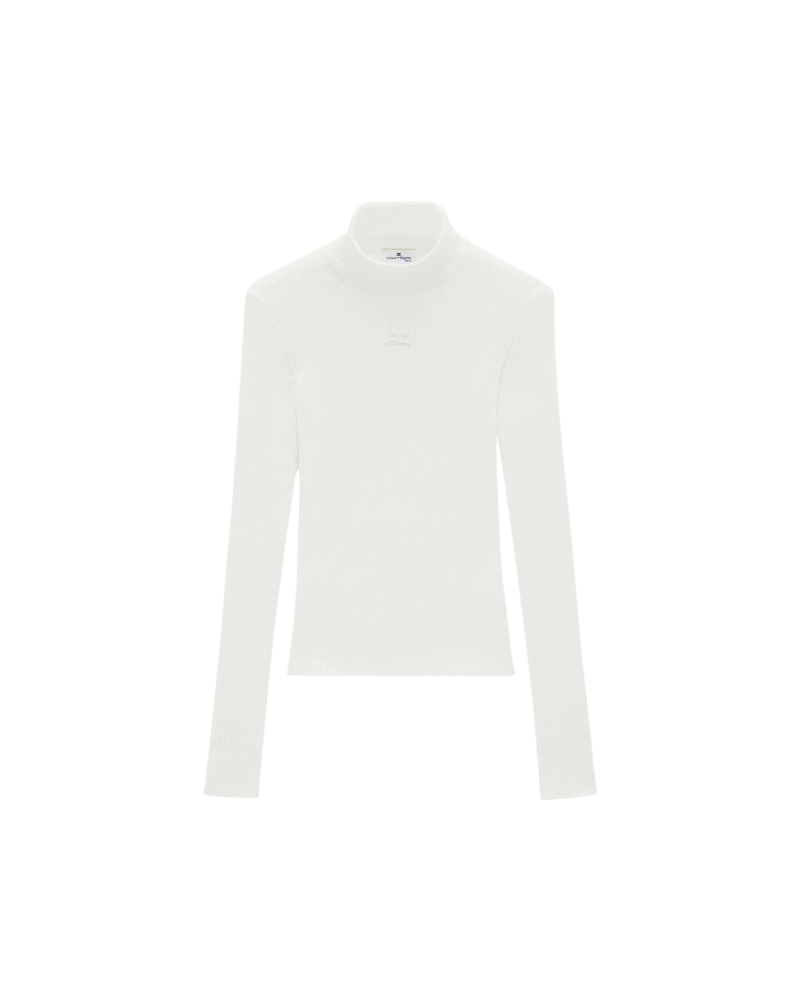 The ribbed knit is a timeless Courrèges piece. 100% cotton made, it is declined here in a long sleeves version with a high collar and enhanced on the front with our embroidered white AC logo.