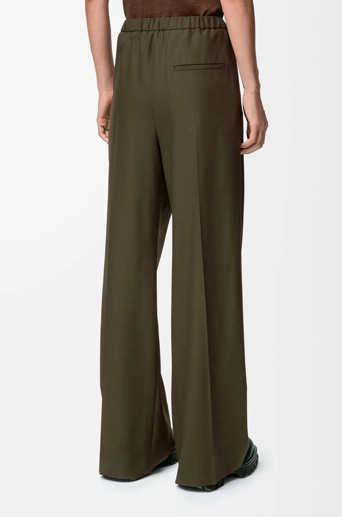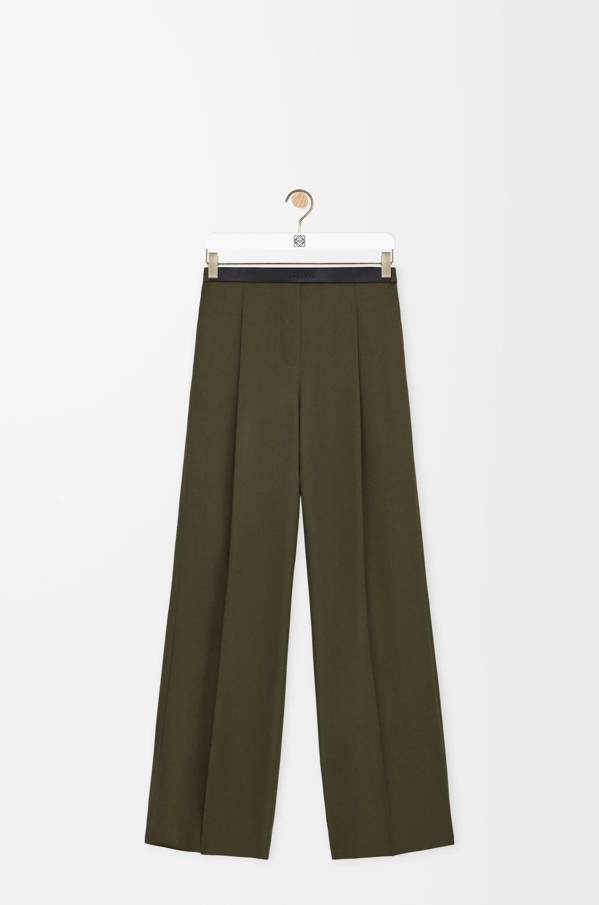 Trousers in lightweight fluid wool tailoring featuring a LOEWE-embossed leather waistband at the front.