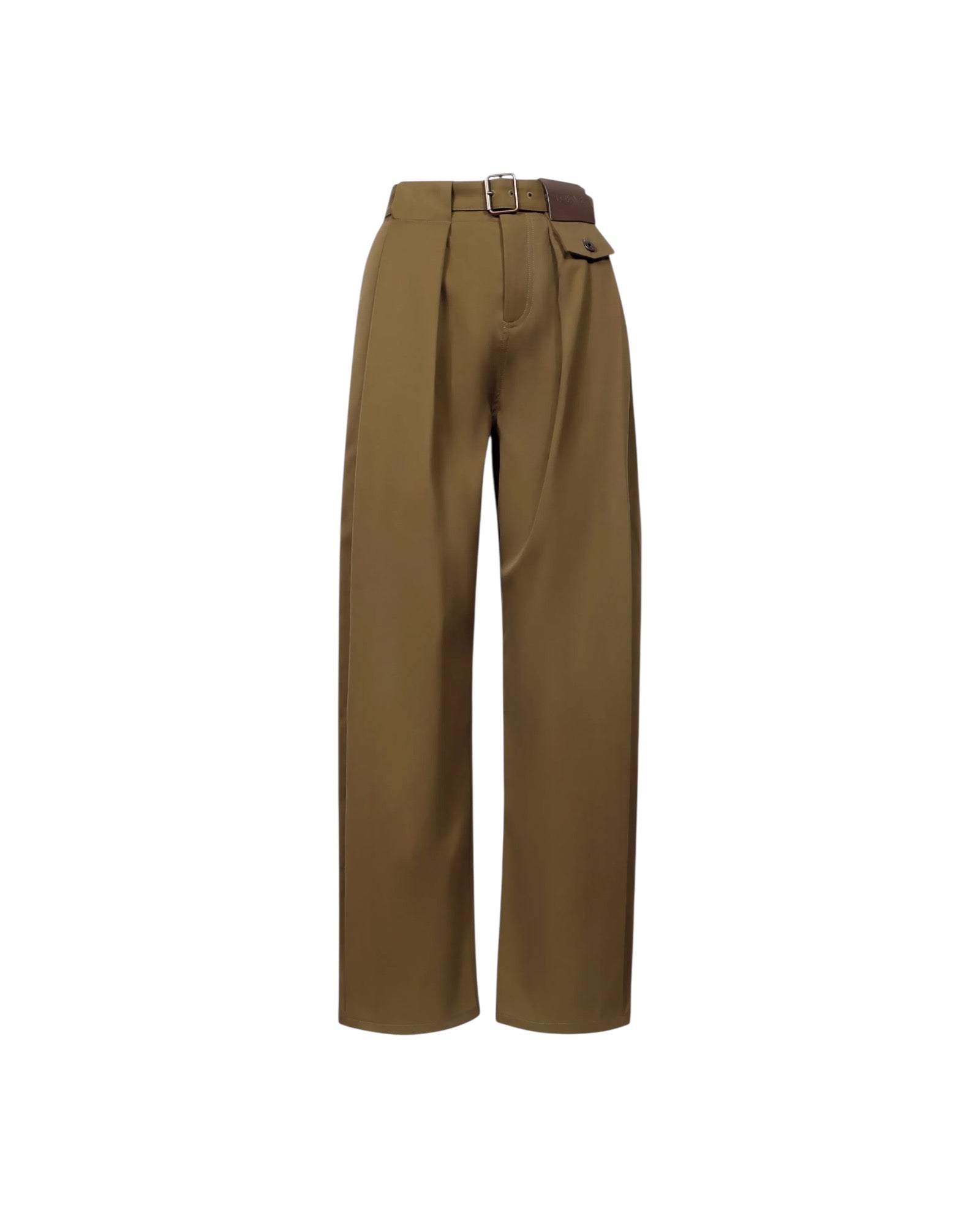 LOEWE PLEATED TROUSER WITH BELT KHAKI – mania-k webshop