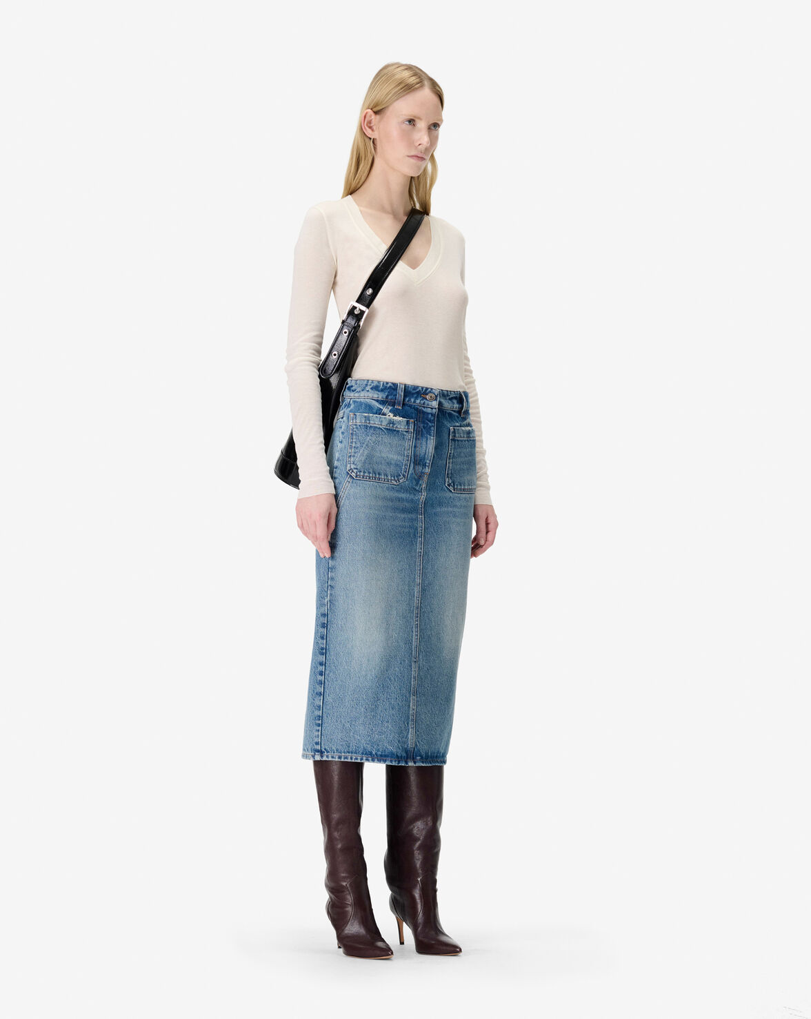 IRO DENIM MIDI SKIRT SIRYNE BLUE