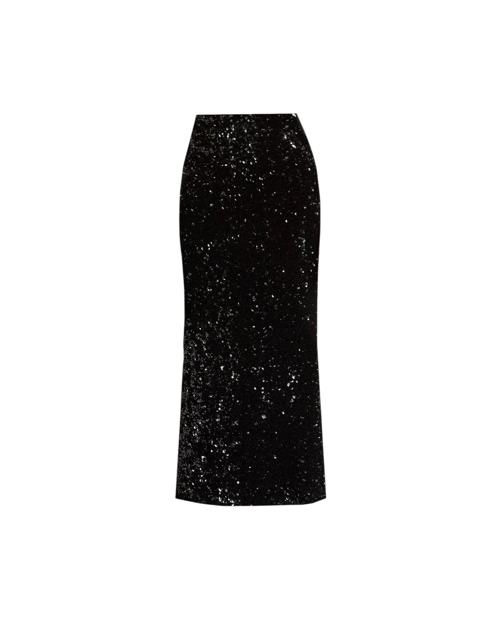 VINCE SEQUINED VELVET COLUMN SKIRT BLACK