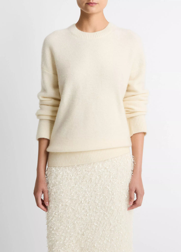 VINCE PLUSH CASHMERE CREW NECK PULL ECRU