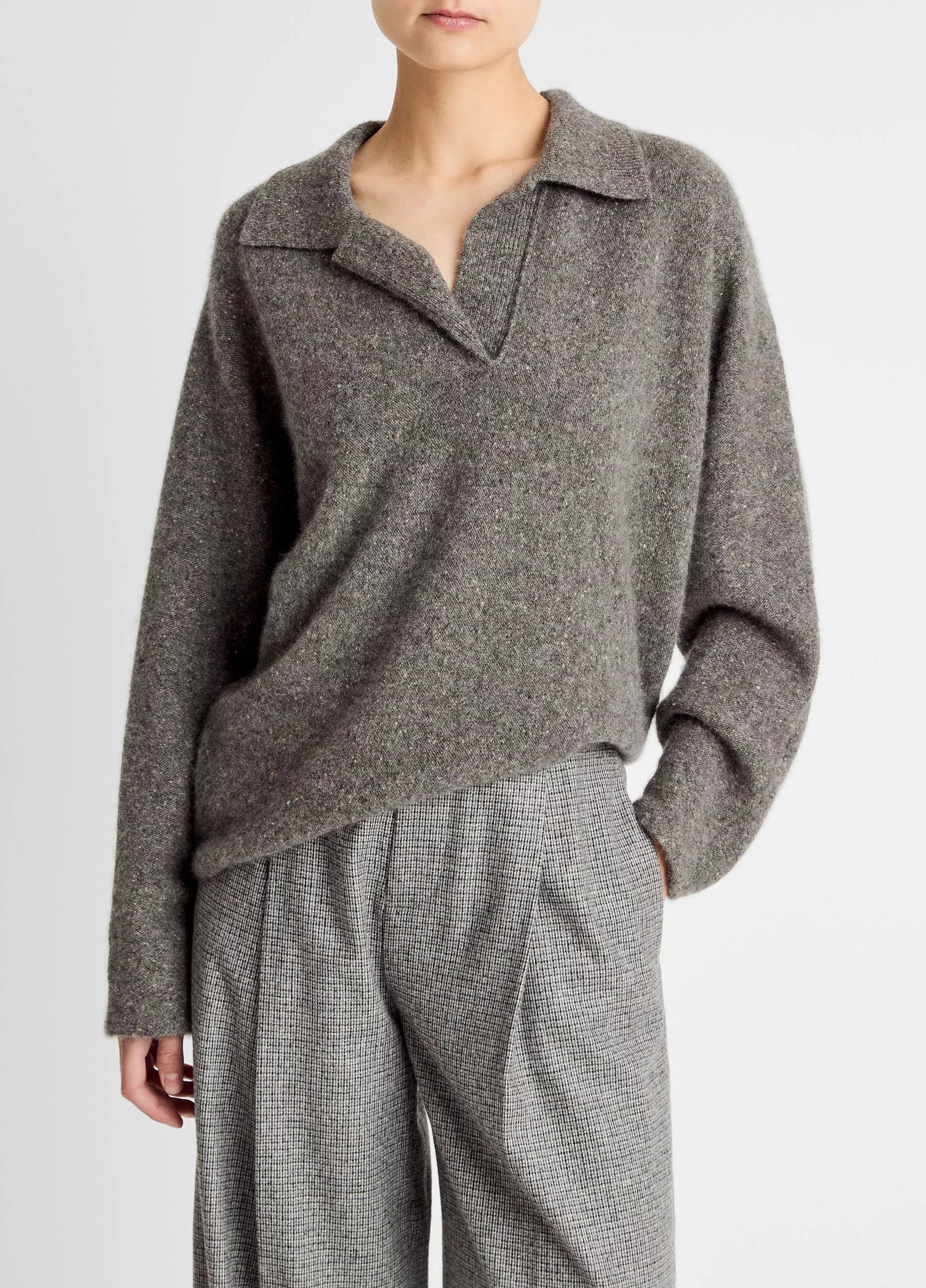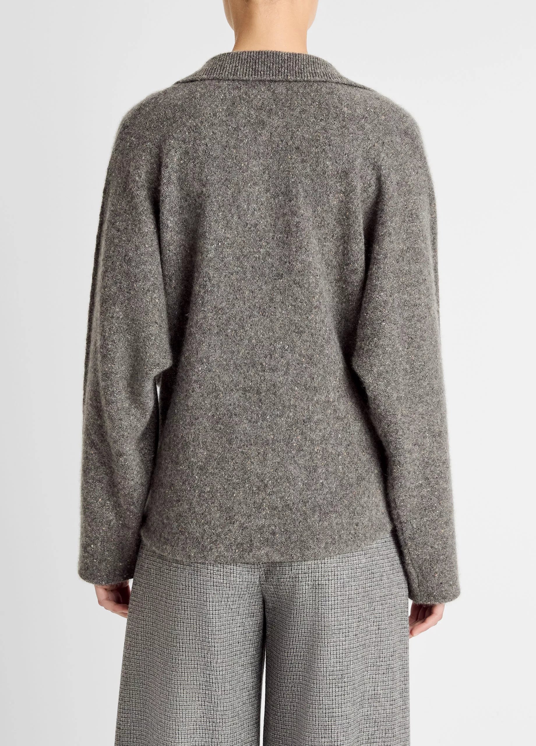 Knit from our signature plush cashmere, this classic polo sweater is distinguished by easy dolman sleeves and a textural, multicolored Donegal finish.
